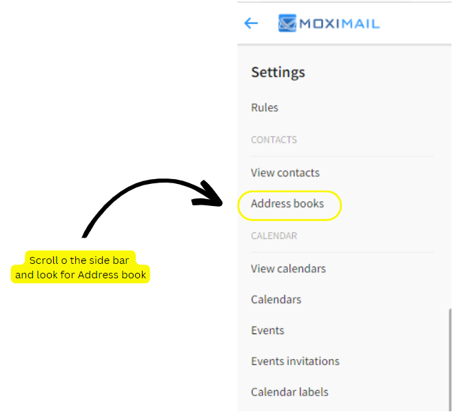 at the top right corner of the navigation bar and select the Address book in the Contacts section in the sidebar.