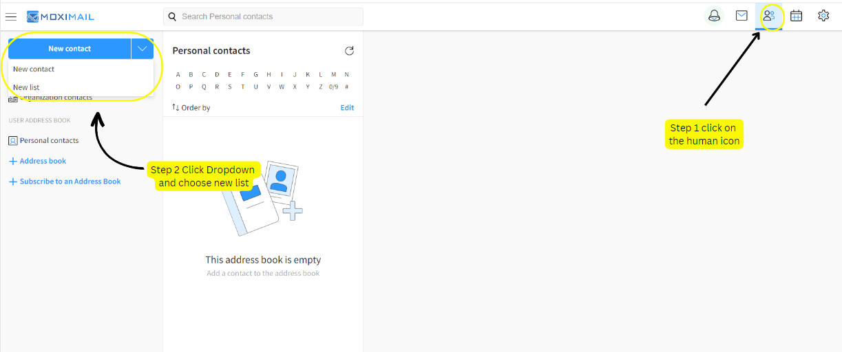 To create a list, access the Webmail > Address Book
